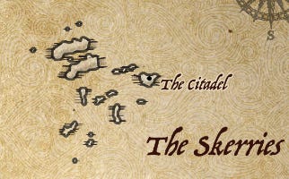 The Skerries is an archipelago within the Archipelago: a collection of islands which serve as a haven for pirates and outlaws. The closest thing to a city in the Skerries is a place called The Citadel, a location where one can find anything…at a price.